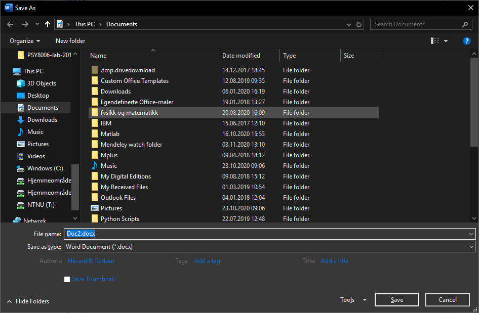 I have several times lamented the stupid thing where ctrl+backspace in Word will delete the word and the preceding space. In the newest version of .docx this seems to be fixed. When I used ctrl+backspace last week (and today), only the word was deleted. Now, I say the last version of .docx, instead of Word … Because: I opened a .docx file that I worked on in 2018 (originally created in 2017). And lo and behold, ctrl+backspace still deletes the preceding space. So I don’t know, apparently Word saves some important stuff in the file format??