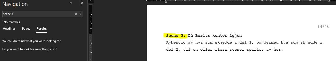 I’m working on a document where I am the main author, and five other people have made changes, comments and suggestions. In the end, this leads to a mess of changes that makes it impossible to read the document in “show all markup”. So I’m reading it in simple markup. I notice that there are several double spaces (test: like this) in the document. My time-tested way of dealing with these are “find and replace” (ctrl+h), search for “ ” (double space) and replace with ” ” (single space). I did so, and Word replaced them all, eventually reporting that it could find no more instances of double space. Yet, I still saw one on the page in front of me. I did a regular search (ctrl+f) and lo and behold, Word finds 11 instances of double space. It seems the search in search and find and replace works differently …
