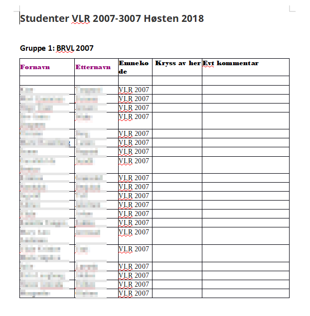 While previously the two tables were nicely presented on their separate pages, they’re now mashed across three. Symbols appear everywhere. The heading etternavn is repeated for every cell in that one column. In the distance, sirens. It’s a mess. Even more strange, downloading the file from my email and opening it a new causes it to do the same thing. Even if I restart Word, re-download the file and open it again, it still shows the same messed up image. It’s like Word retained the memory of this file and overwrites new files with it. How did I solve this? Easy: I opened it in LibreOffice, where it presented exactly as intended.