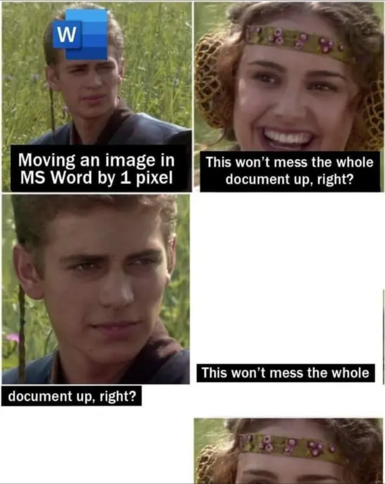 No one likes listening to someone who complains a lot. Unfortunately, I love complaining. It is a serious character flaw that I work hard to suppress in daily life. My method for dealing with it is to choose a specific topic that I allow myself to complain about and focus all my complaining needs on this one theme. Few entities annoy me more than Microsoft, and especially Microsoft’s Office suite of software (or Microsoft 365 or whatever else it calls itself these days). I have been forced to use this garbage for years as it is a standard tool used at my place of work and because Office undeservedly inhabits the position of “default office suite” in most people’s lives. Since some time around 2016 I have kept a personal list collecting every grievance I ever had with Office. This is my safe space to indulge in pettiness and name-calling. Enjoy.