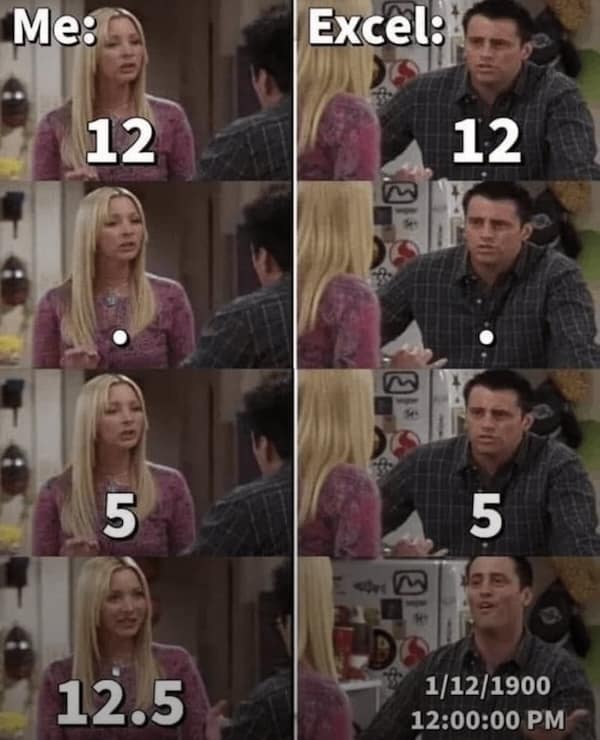 Even worse: I’m writing “F = , p = .” into a lot of cells, so I’ve copied it to be able to paste it before editing the cell, filling in the numbers, moving on to the next cell and then pasting again. However, when I start writing in the cell where I have pasted the text, Excel clears out the clipboard. So I have to manually go back to the cell where I wrote the text and copy it again after whenever I write something.