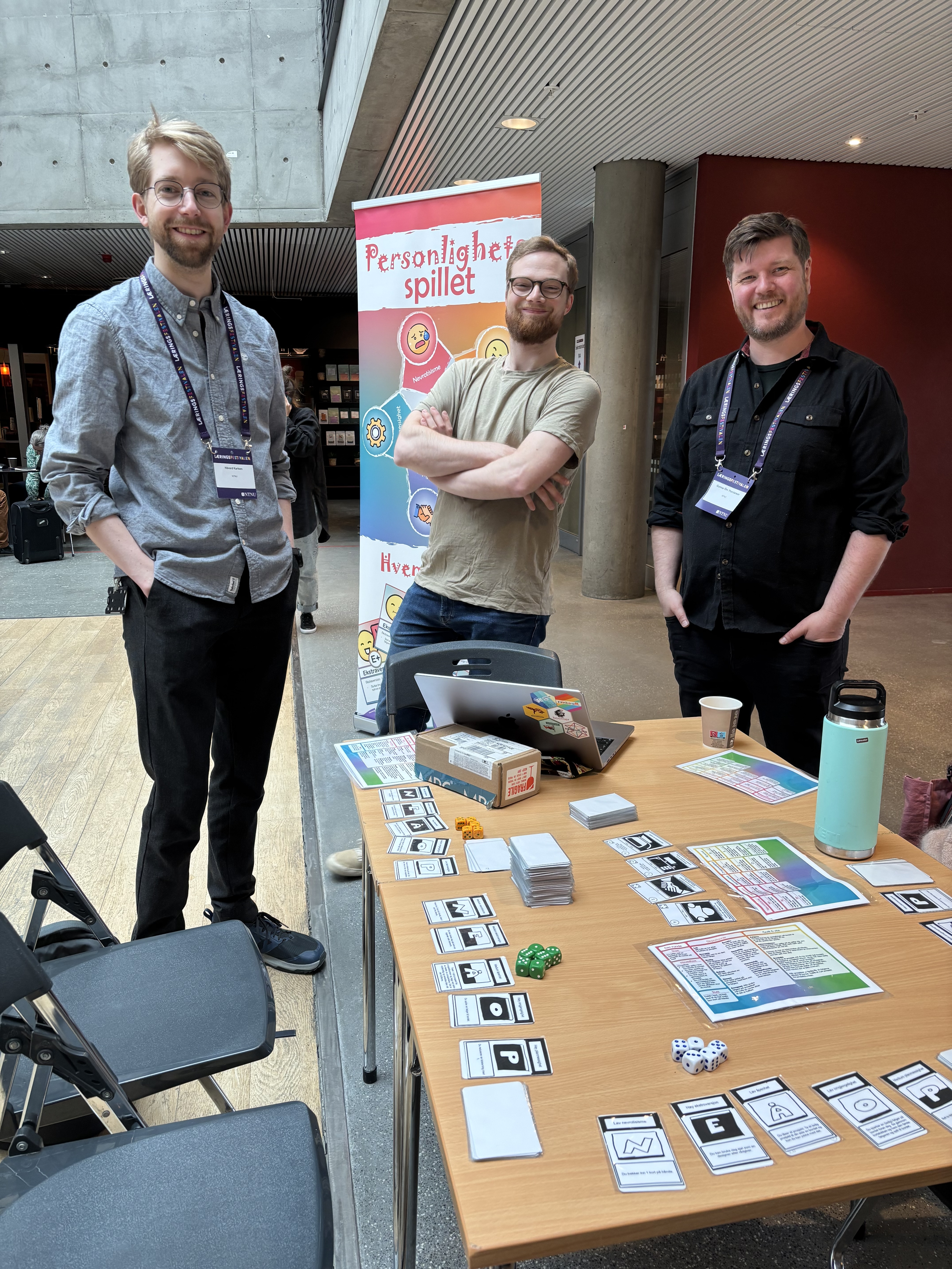 We presented our game at NTNU’s Læringsfestivalen (the festival of learning) in May of 2025. In addition to our presentation of the game and our work process, we had a table in the main hall where anyone who was interested could come and try the game. And lots of people did!